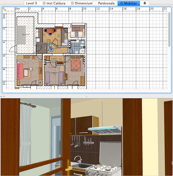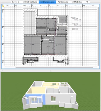 | “Dimensiuni” level showing all the dimensions | “Mobilier” level showing furniture |