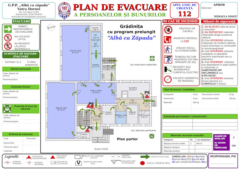 First floor of a kindergarten in Sweet Home 3D, then integrated in an evacuation plan