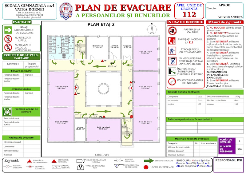 Second floor of a school in Sweet Home 3D, then integrated in an evacuation plan