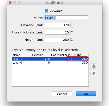 - Check the New walls height and New levels floor thickness settings in the Preferences pane, so they match the height and floor thickness of the level you’re going to reproduce (see also this tip for more information about levels).
