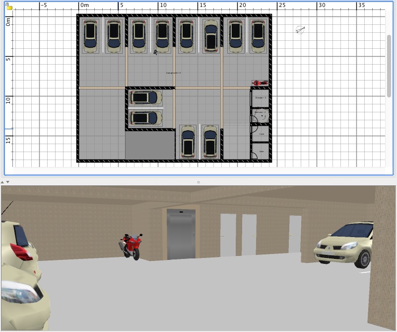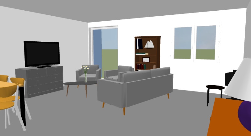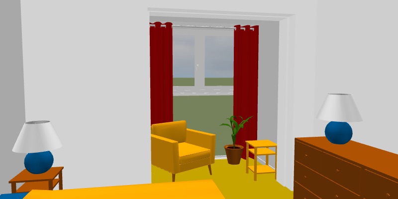 But it’s also useful to visit a place when it is finished in Virtual visit mode, and it’s a good way to check if there is for example, no error on the elevation of objects, which may happen when you move objects around (the elevation of an object is adjusted to its environment only when its elevation is zero, or afterwards, when you select Furniture > Reset elevationmenu item).