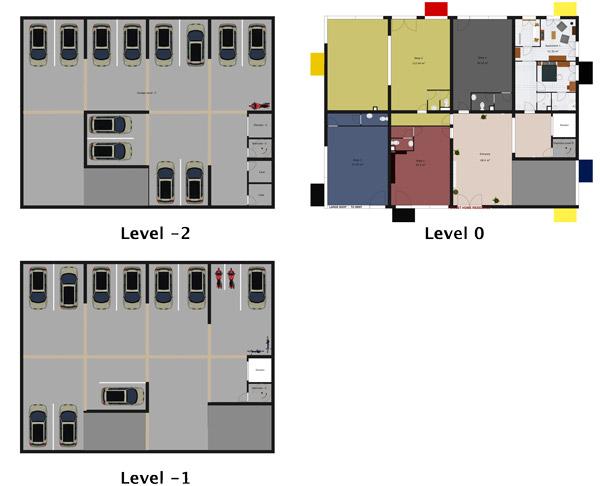 The number of apartments/levels of the Sweet Home Residence was deduced from the number of park places at the underground levels.