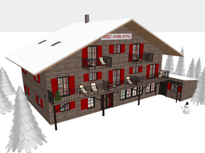 Do you want to create a residence, a hotel or an office building with Sweet Home 3D? This article, based on the three following examples, presents several tips to help you design large buildings (click on the images to view them in 3D and/or click on links to download their Sweet Home 3D file).![]()