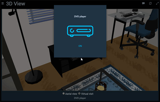 – On the forum of OpenHab (developed in Java), we noticed a year ago a more sophisticated use: Yannick Schaus embedded the WebGL 3D view of Sweet Home 3D JS viewer into HABPanel dashboards and customized it to let the user interact with devices shown in 3D.