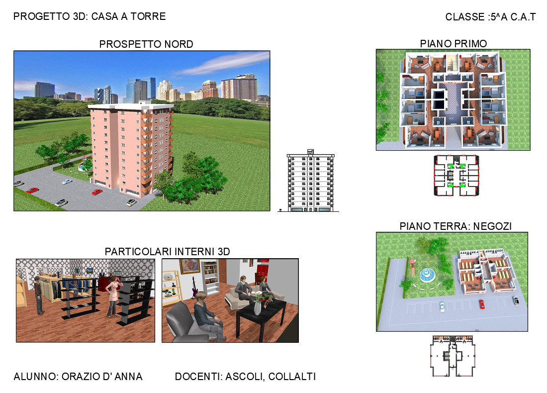 – How many hours did they spend on them?I find it difficult to quantify the hours dedicated to the realization of their project, as everything depends on the complexity of what they choose. Certainly a good project is obtained by using more than 30 hours. To make a good project, the choice of textures is very important. The thing that most impresses me about my students is the care of the smallest details (e.g. various electrical sockets or different object in kitchen such as pots, bottles, etc.). I want to add a consideration: when creating a 3D project, we often lose track of time. Me too, I spend many hours without realizing how quickly time passes while using the program. I think the same thing happens to the guys too, who prefer to spend hours drawing a project in 3D rather than studying.