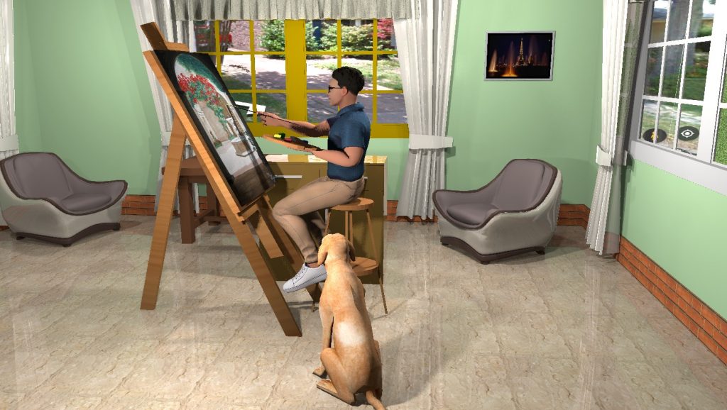 At first, I used them with a specific pose, but over time, I also started to use Blender to modify them. I’m new to the latter, but I like the three programs because they are compatible: in Blender, I have designed furniture from my country, modified the clothes of my characters, among other things. MakeHuman is an easy-to-use program, it’s like the old paper doll dress up game, but when necessary, Blender is useful to modify the pose of a character, change its DAE format to OBJ and finally import it into Sweet Home 3D.