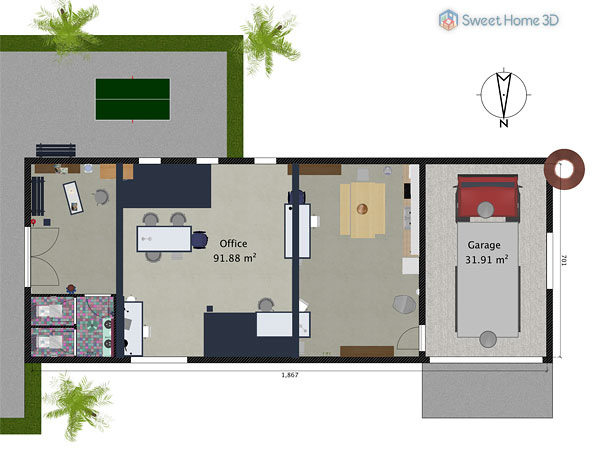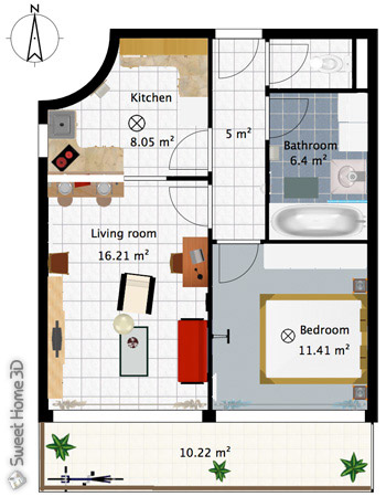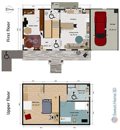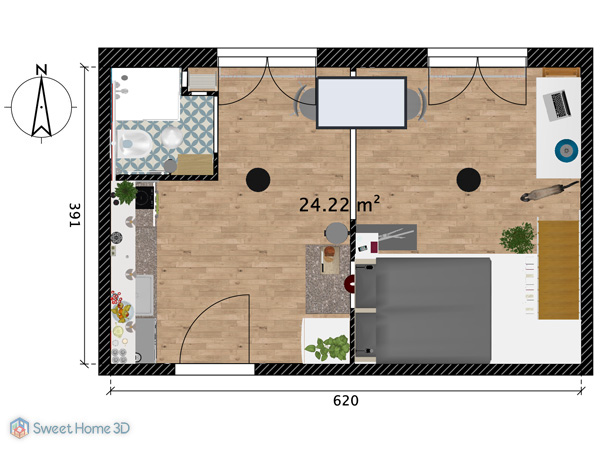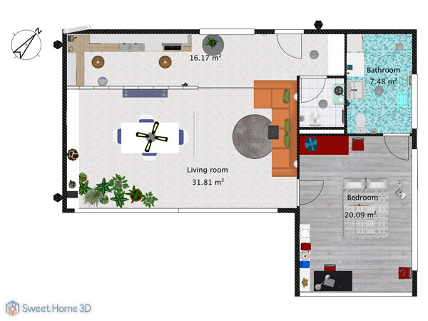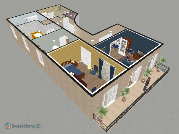 Um ein Beispiel dieser Seite zu testen, lade es herunter, indem du auf den Link klickst, und öffne es mit Sweet Home 3D.