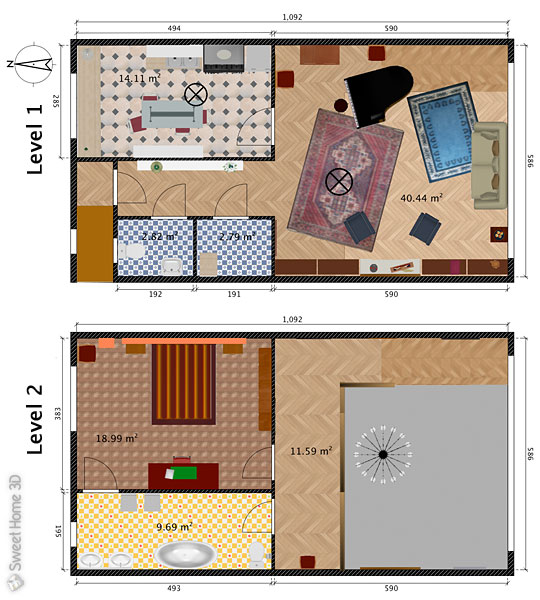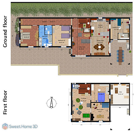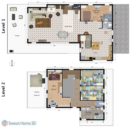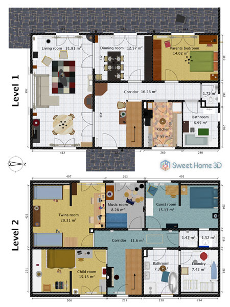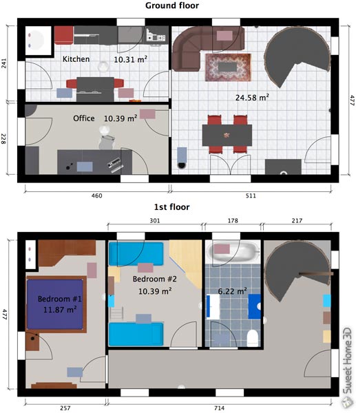 Diese realen Beispiele zeigen detaillierte Hauspläne, kreative Projekte zur Wohnraumgestaltung und komplett eingerichtete Hauslayouts, die mit den Sweet Home 3D-Tools entwickelt wurden.