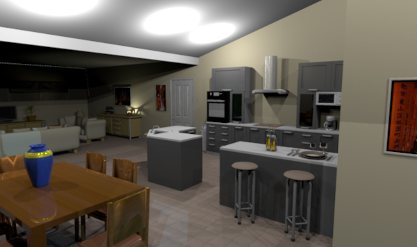 In the second pic, I used the advanced render tool (very nice Emmanuel!) to turn off the ceiling lights and activate 'lamps'.