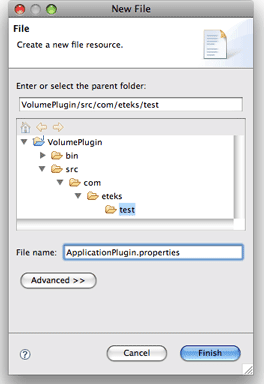 Một tệp ApplicationPlugin.properties mô tả tên plug-in, lớp của nó, các phiên bản tối thiểu của Sweet Home 3D và Java mà nó được hỗ trợ, và các vấn đề pháp lý. Chọn File > New > File từ menu Eclipse, nhập tên tệp ApplicationPlugin.properties và nhấp vào Finish, như được hiển thị trong hình 5.