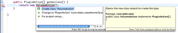 Lớp plug-in VolumePlugin bây giờ đã được lập trình, và gần như sẵn sàng hoạt động như một plug-in trong Sweet Home 3D. Hai điều cuối cùng cần làm là: