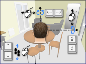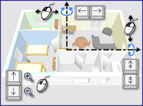 在绘制房屋的任何时间,您都可以更改 3D 视图中使用的视点。有两种不同的房屋查看方式可用,默认选择的模式设置为 3D 视图 > 鸟瞰图 菜单,另一种模式设置为 3D 视图 > 虚拟参观。在这两种模式下,您都可以使用鼠标或键盘箭头来更改当前视点,如图 16 和 17 所示。