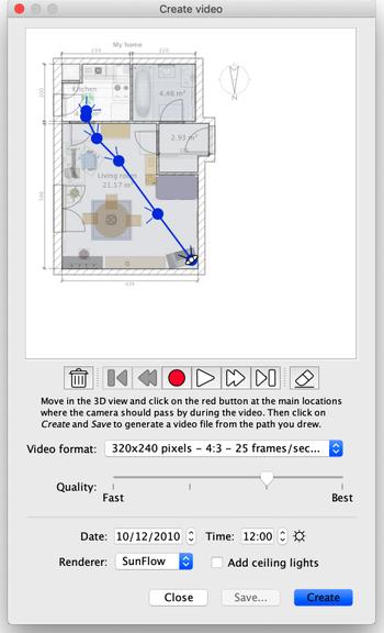 使用播放按钮粗略地检查 3D 视图中摄像机的路径,因为计算视频可能需要几分钟到几小时,具体取决于您的房屋、您选择的质量和计算机的功率。