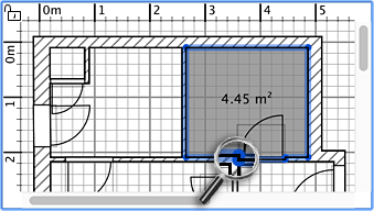 当选择一个房间时,您还可以在选择模式下使用鼠标移动其每个点,并使用文本下方绘制的指示器更改其区域和名称的位置。
