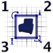 当在平面图中选择一件家具时,您可以使用出现在所选家具每个角上的四个指示器之一来更改其大小、标高或角度,如图 9 所示。